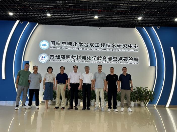 讲座结束后,张和胜董事长一行在药学院熊书记等班子成员的陪同下参观了国家单糖化学合成工程技术研究中心,并在药学院召开了座谈会,就合成药产业发展现状和趋势、技术成果转化合作、生物与医药专业硕士人才培养等进行了深入交流。